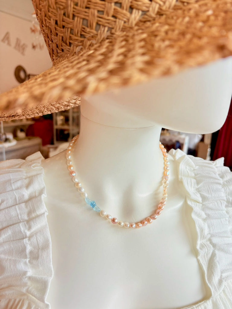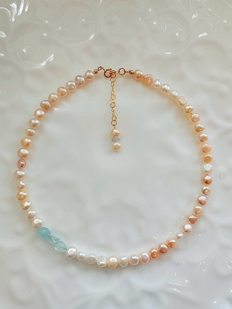 🌊 アクアマリン × 淡水パール – 「勇気と癒しの石」。心を穏やかにし、ラニカイの海のように優しい波動で包み込んでくれるクリスタル。